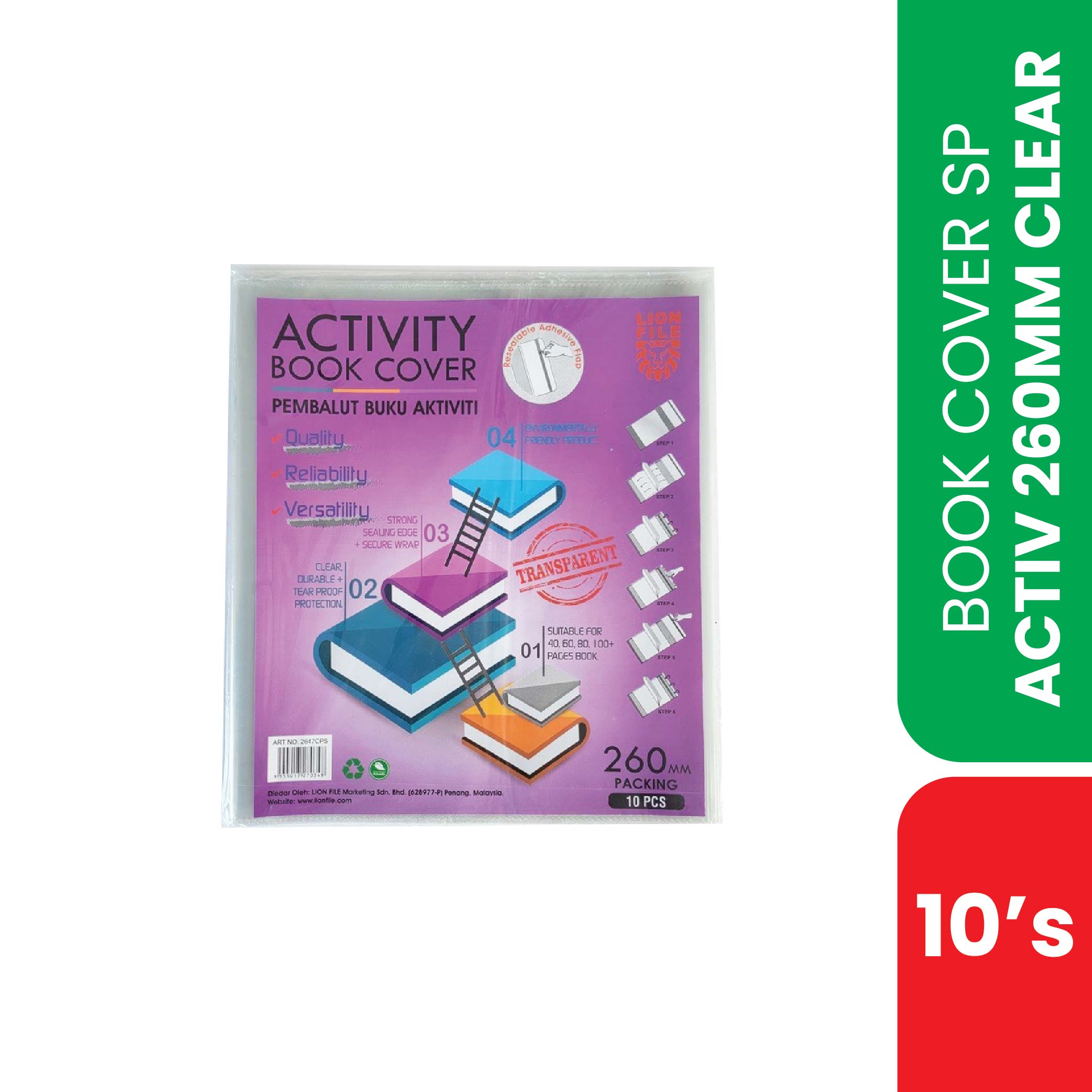 BOOK COVER SP ACTIV 260MM CLEAR 10S